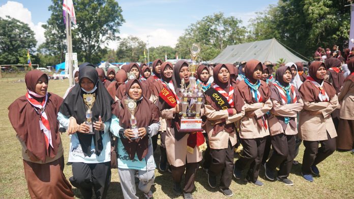 Kota Jantho, Aceh Besar – Kontingen Pramuka Putri Pesantren Modern Al Manar Aceh Besar kembali meraih prestasi juara umum tingkat penggalang pada Lomba Perkemahan Pramuka Pesantren (LP-3) Putri VII se-Sumatera Tahun 2019. Kegiatan yang sekaligus ajang silaturahmi antar santri ini berlangsung mulai 28 September sd. 3 Oktober di Bumi Perkemahan Kota Jantho Aceh Besar dan ditutup pada Kamis (3/10). Selain Al Manar, Juara umum juga diraih oleh Pesantren Alfityan School Aceh Besar tingkat penegak.